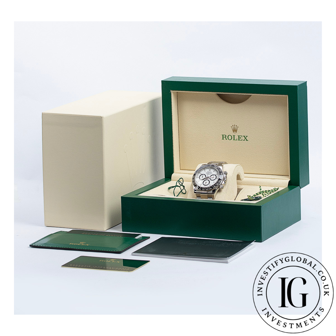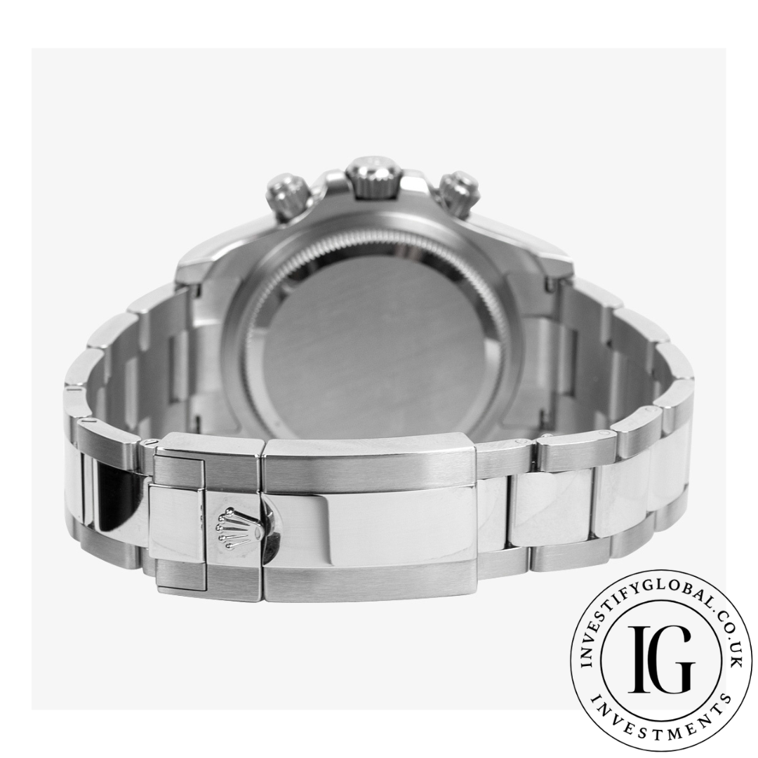 40mm Stainless Steel Case & Stainless Steel Oyster Bracelet, This Classic Rolex 126500LN Is A Watch Enthusiasts Must Have. Featuring A Fixed Bezel In Cerachrom Ceramic With Engraved Tachymetric Scale, White Dial & Automatic Movement With Chronograph Function, The Rolex 126500LN Is Not Only Sleek In Style But Also Has a Robust & Functional Design. The Sleek & Sophisticated Design Of The Rolex Oyster Perpetual Daytona Makes It Ideal For Both Formal & Casual Wear.