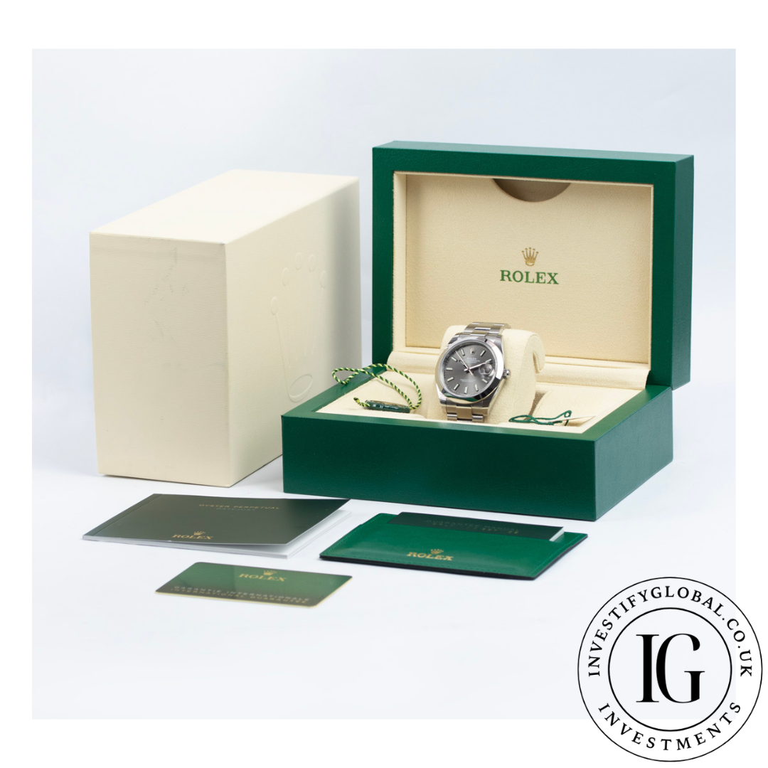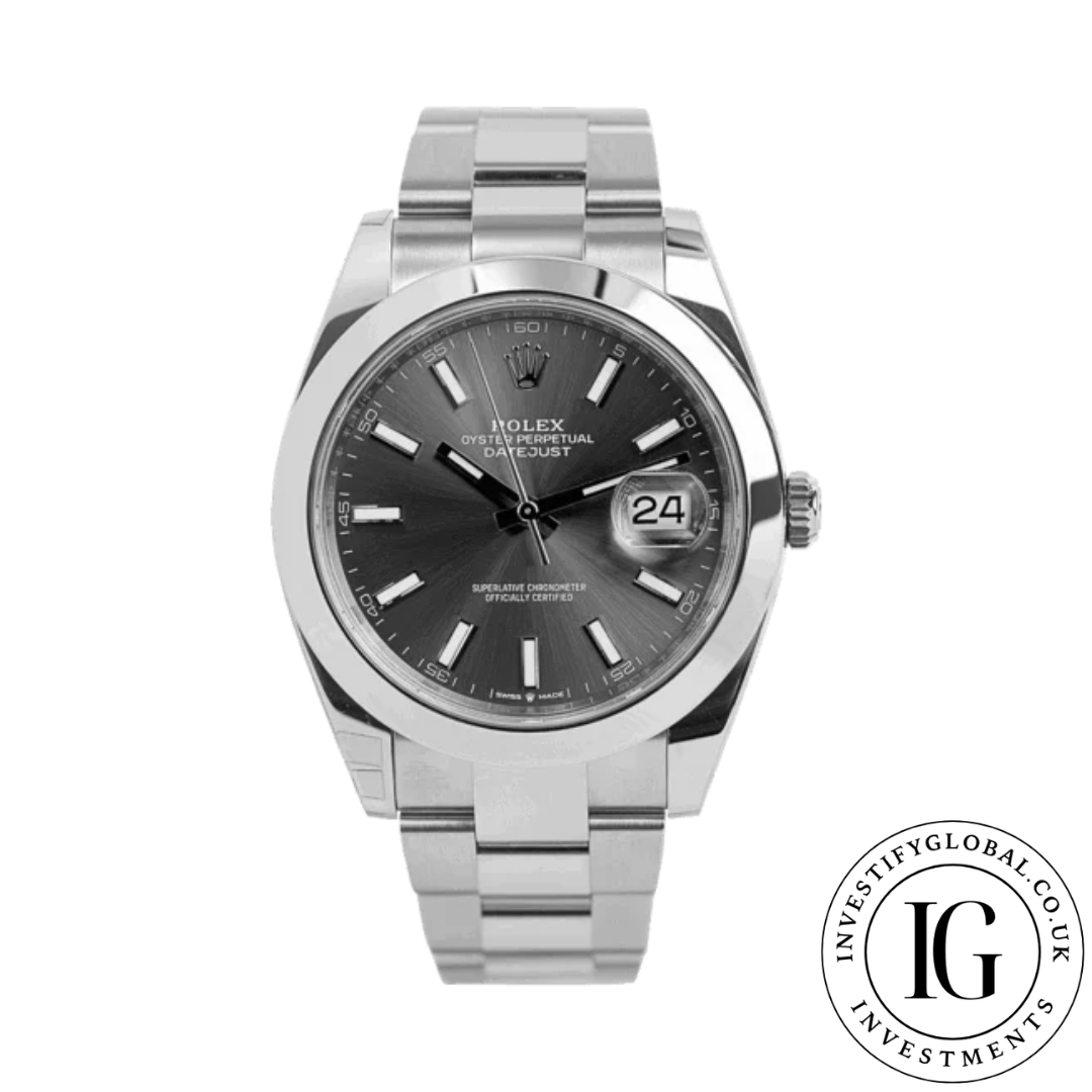 Stainless Steel Rolex Oyster Perpetual Datejust 41 Model 126300 With A 41mm Stainless Steel Case & Stainless Steel Oyster Bracelet, This Classic Rolex 126300 Is A Watch Enthusiasts Must Have. Featuring A Fixed Stainless Steel "Smooth" Bezel, Grey Dial Featuring A Date Indicator At 3 o'clock & Automatic Movement, It Is Not Only Sleek In Style But Also Has A Robust & Functional Design. The Sleek & Sophisticated Design Of The Rolex Oyster Perpetual Datejust 41 Makes It Ideal For Both Formal & Casual Wear.