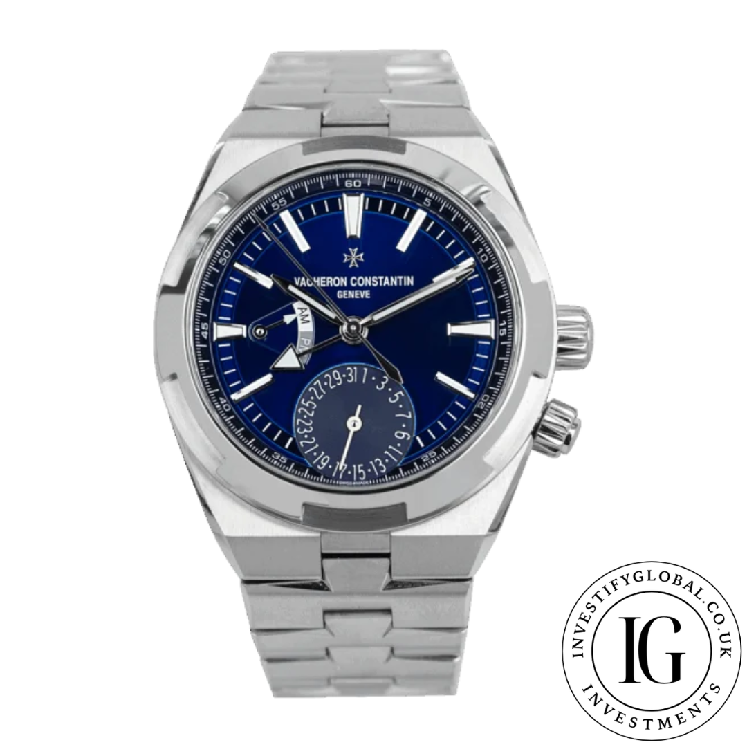 41mm Stainless Steel Case, Translucent Lacquered Blue Dial, Lume-Filled Indexes & Integrated Maltese-Cross–Inspired Bezel, Precise Dual-Time Mechanism With Day/Night Indicator, Index Hour Markers With Sword Shaped Arms & 2 Sub-Dials, Transparent Caseback, Sapphire Glass, Deployant Buckle,